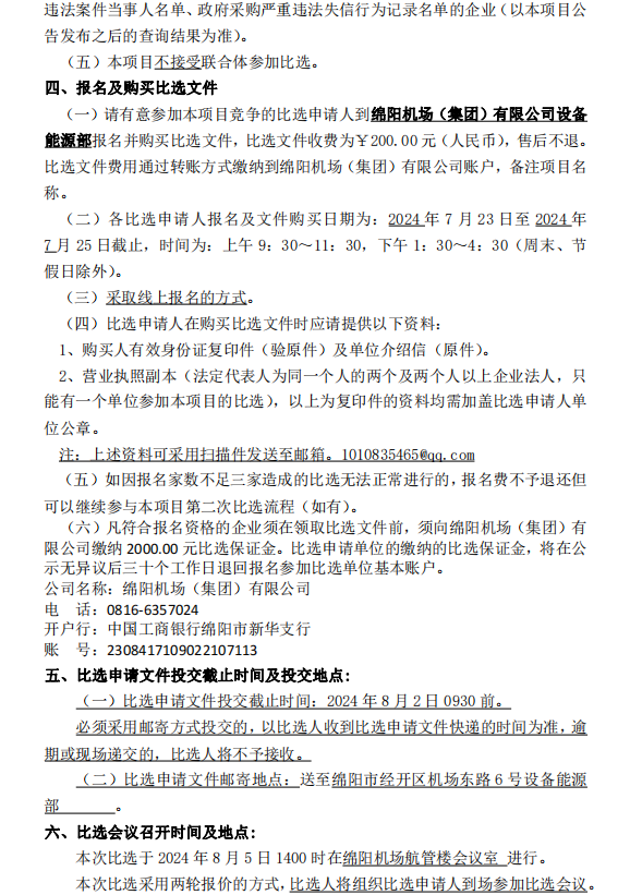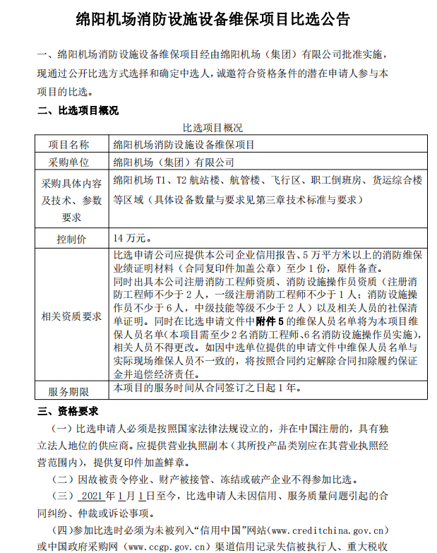 綿陽機場消防設(shè)施設(shè)備維保項目比選公告