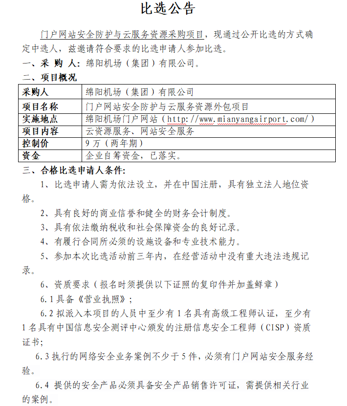 門戶網(wǎng)站安全防護(hù)與云服務(wù)資源項目采購(第二次)